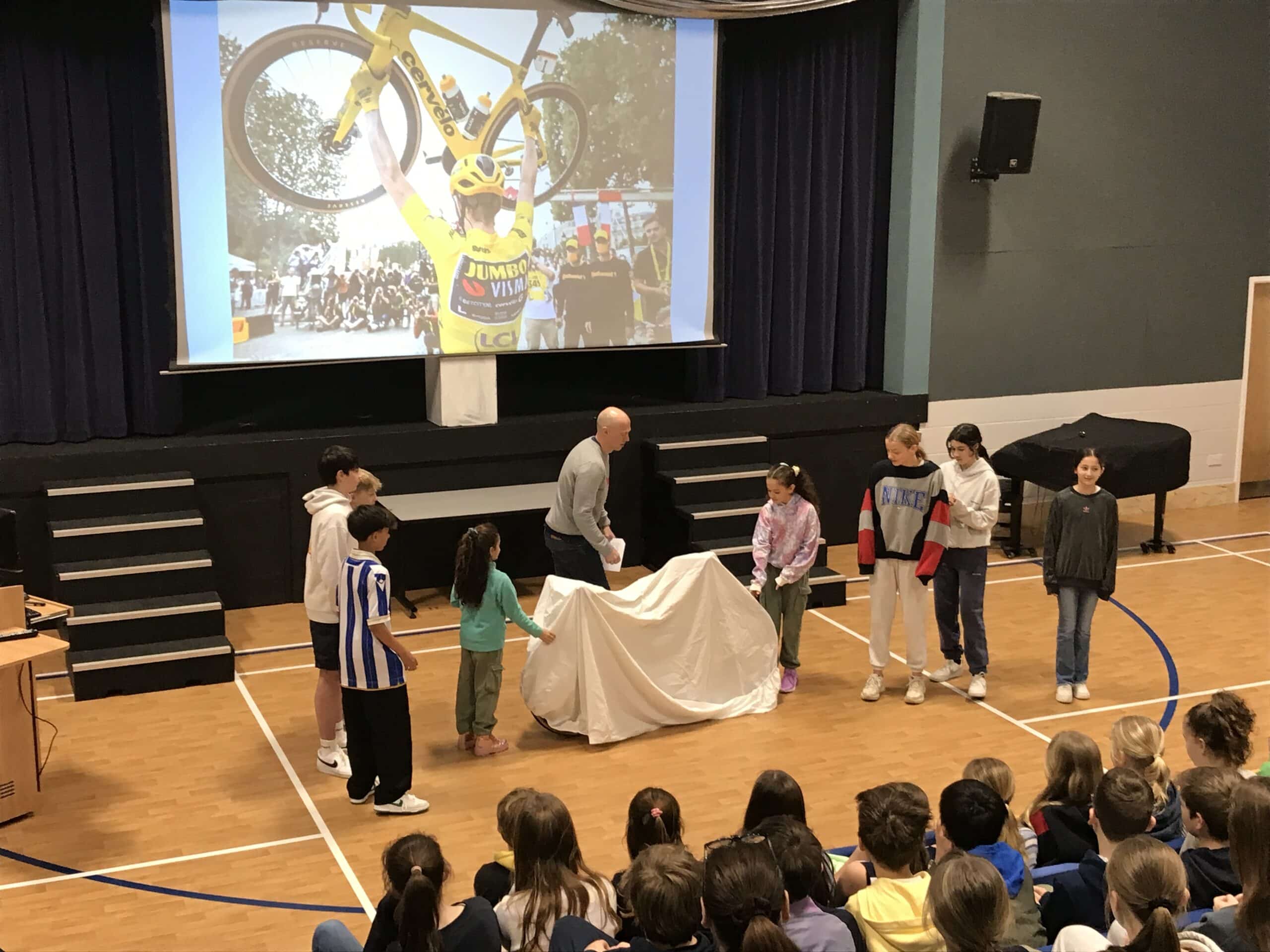 One of our parents who is an advisor to the Worlds #1 cycling team (and current winner of the Tour de France (TDF)), had the bike in his possession for 36hours due to a project he is working on and was able to bring it to CPS to talk about it and show the children.