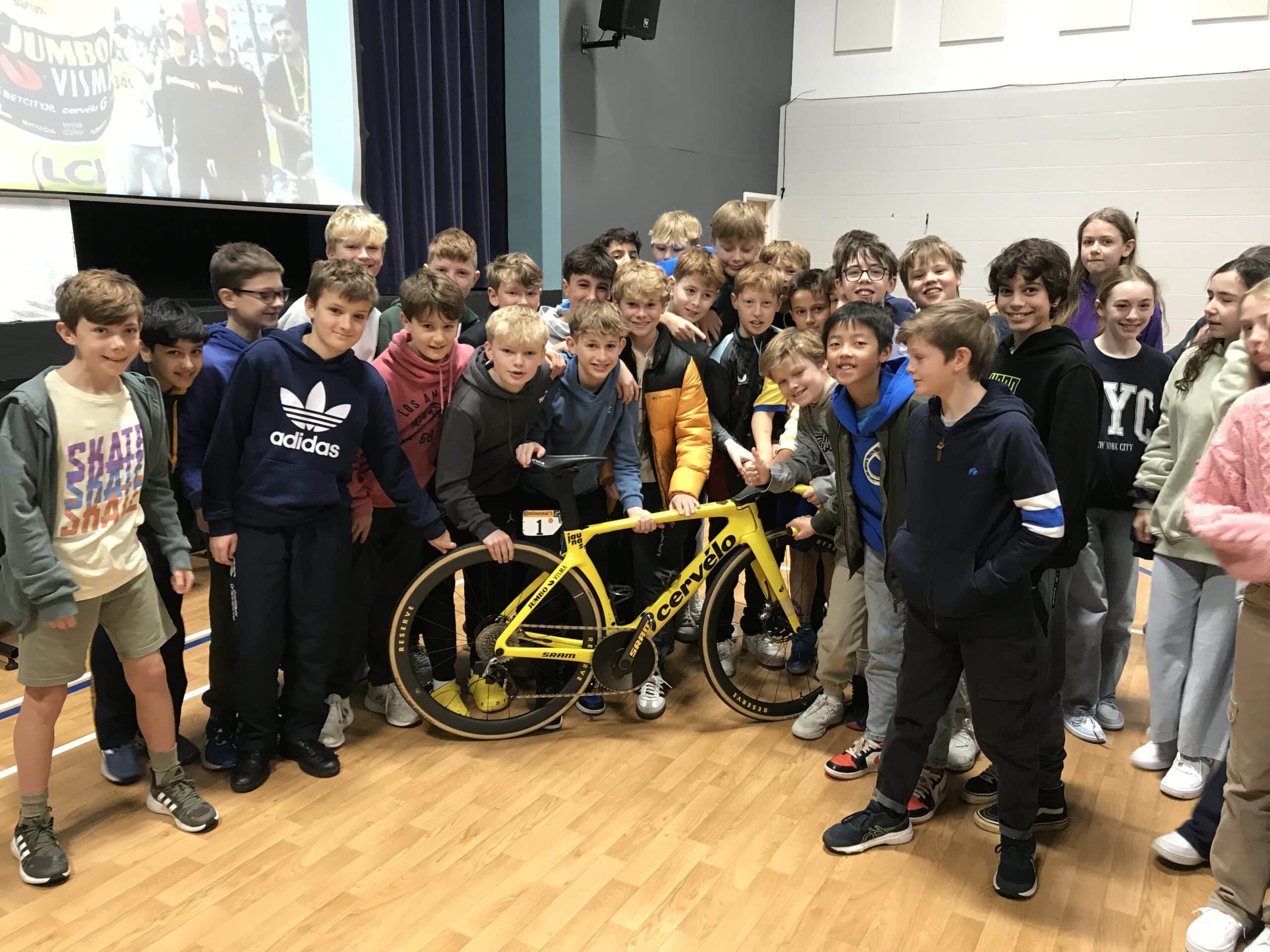This morning, pupils in Form 5 & 6 got the chance to see the bike that won the Tour de France.